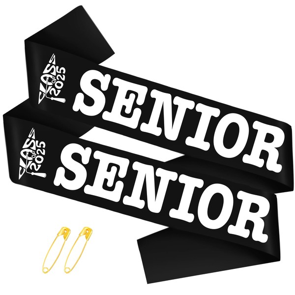 - 🎓【Senior Sash 2025】Black satin sash with white printing letters "Class of 2025 Senior", The 2 pcs class sashes perfect decorations for graduation party, sports competition, Pep Rally. The sash is eye-catching decor at the party, just try taking some memorable photos with it.