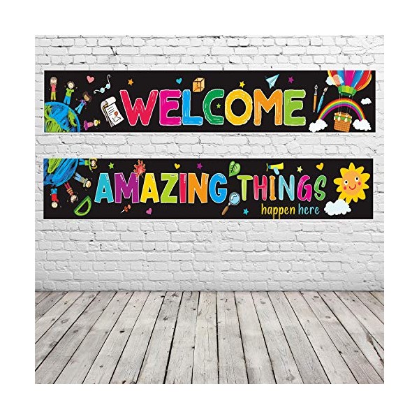 - 【What You Get】Includes 2 positive classroom banners ‘WELCOME’ banner and ‘AMAZING THINGS HAPPEN HERE’ banner, can be applied as combination or separate part.come with 40 glue points which is convenient and easy to use.