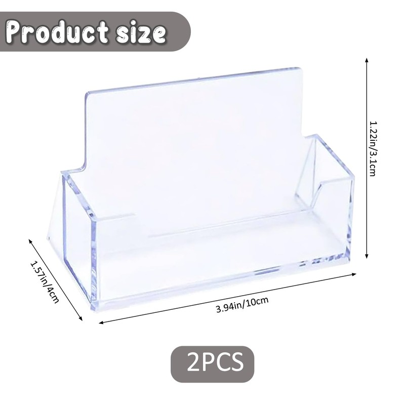 2 Pack Clear Acrylic Business Card Holder Stand – Desktop Display for Office, Desk, or Reception Use, Transparent Card Organizer for Professional Presentations, Holds Standard Size Business Cards