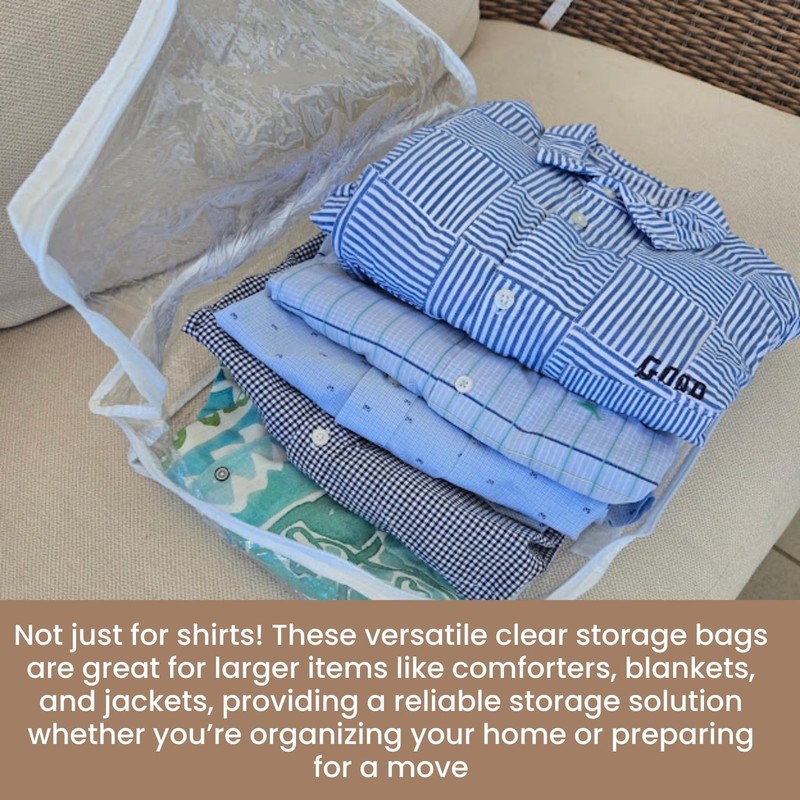 - Ideal for Large Items – Not just for shirts! These versatile clear storage bags are great for larger items like comforters, blankets, and jackets, providing a reliable storage solution whether you’re organizing your home or preparing for a move.