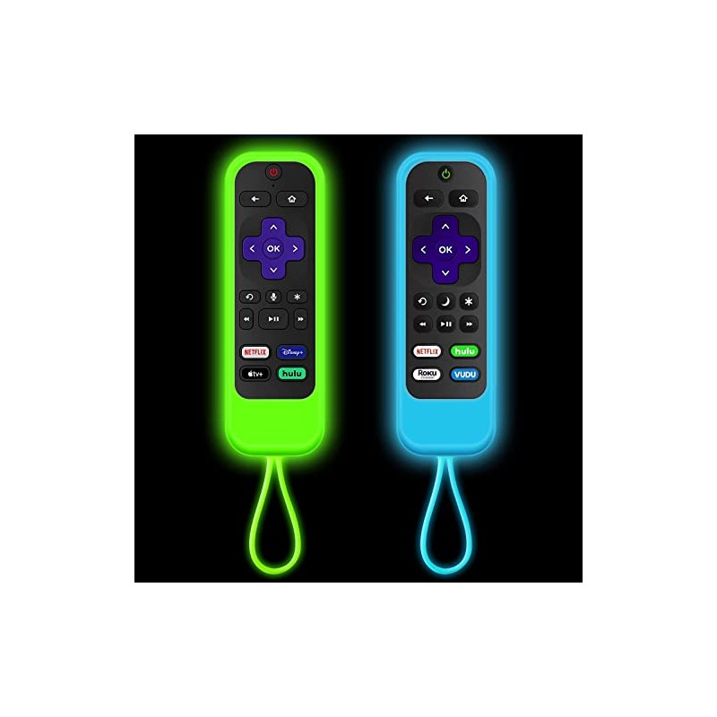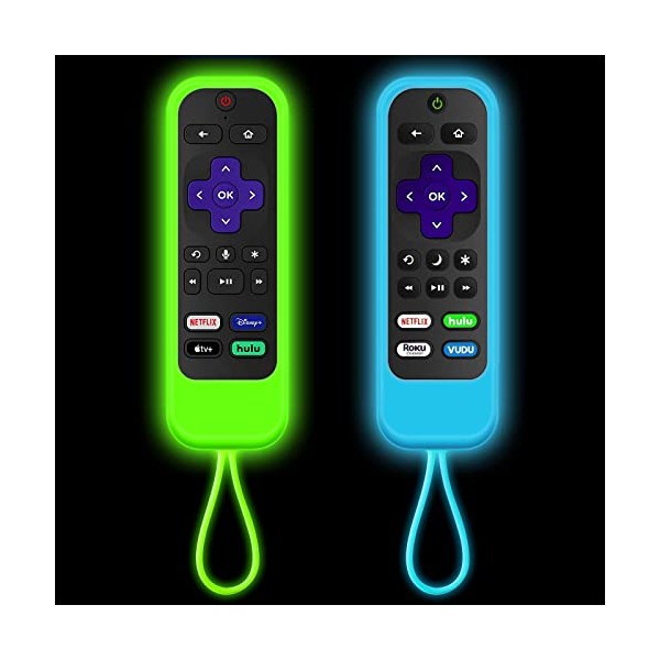 [2 Pack] Climberer silicone Roku remotes cover case Compatible with| TCL Roku | Hisense Roku remote | Roku Express 4K+ 2021 | Roku Streaming Stick+| Roku Streaming Stick 4K 2021(Luminous Green + Blue)