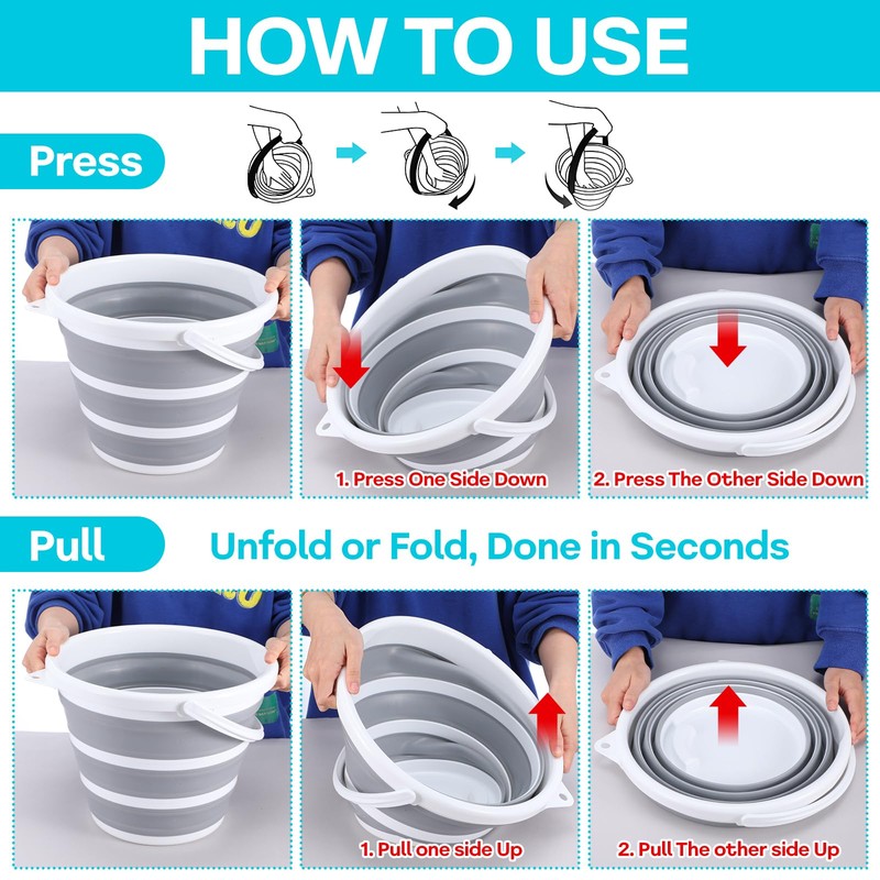 - Versatile Essential for Various Uses: Whether it's for RV,garden watering, drink cooler, car washing, camping, or fishing, ice buckets for parties, this 2-pack of collapsible buckets meets all your needs! Say goodbye to multiple containers; one set does it all, making daily chores and outdoor adventures more convenient.