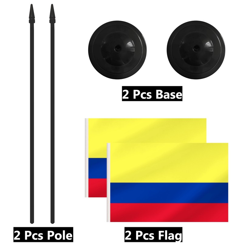 2 Pack Colombia Desk Flag Set, Colombian Desktop Small Miniature Table Office Flag with 12" Black Pole and Black Base, Offices, Classroom, Home, Festival Decoration (Colombia)
