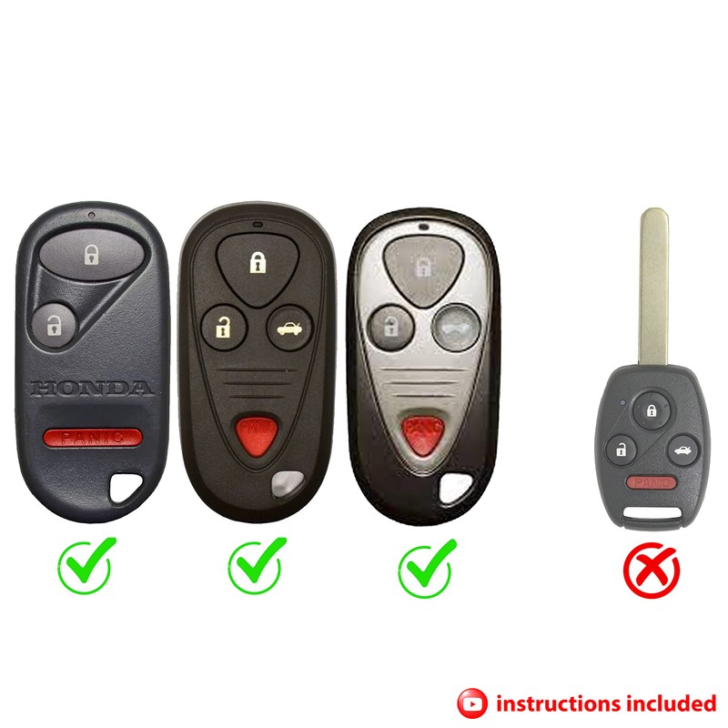 Compatible with all 3 or 4 Button Honda and Acura keyless entry remote fobs (as shown in product photo) and FCC ID of KOBUTAH2T, NHVWB1U521, NHVWB1U523, OUCG8D-387H-A, OUCG8D-355H-A or A269ZUA106