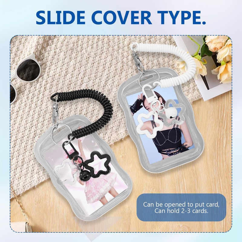 - Package Included: You will receive 2pcs photocard holder with small bell star pendant spring cords,namely black and whiteness. You can pair them with cards of different styles according to your preferences.