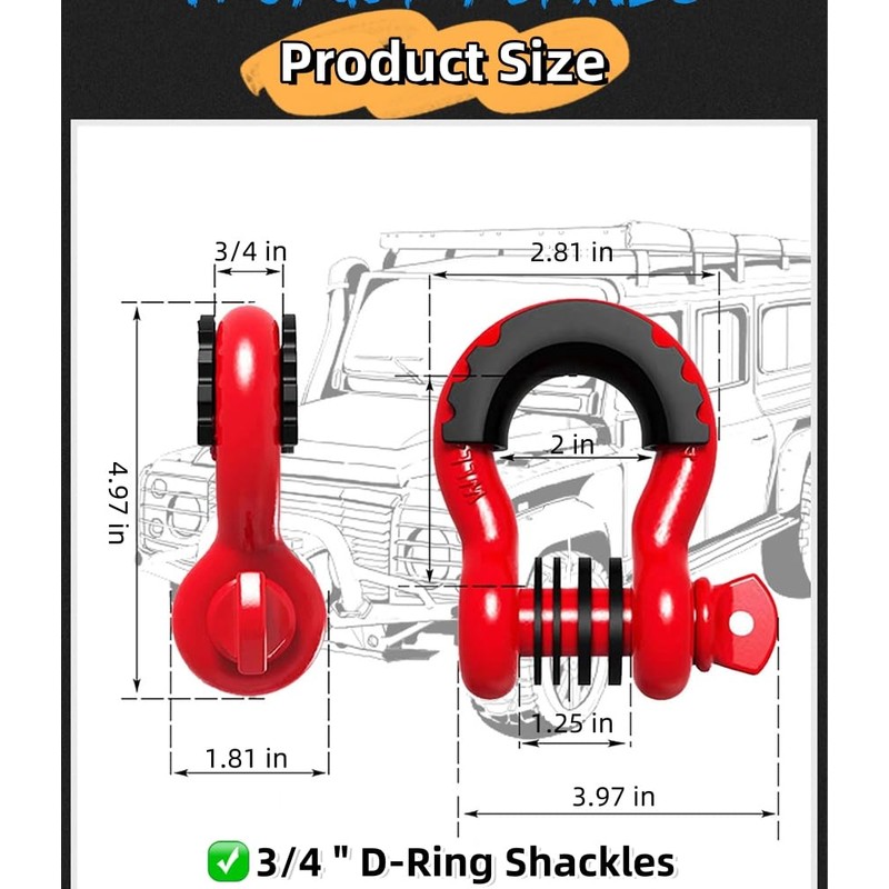 - Fits most aftermarket bumpers: Made of forged steel with a rated towing capacity of 9,500 lbs ( 4.75-ton ). 7/8" Screw pin and 1.25" (32mm) shackle opening compatible with universal off road vehicles.