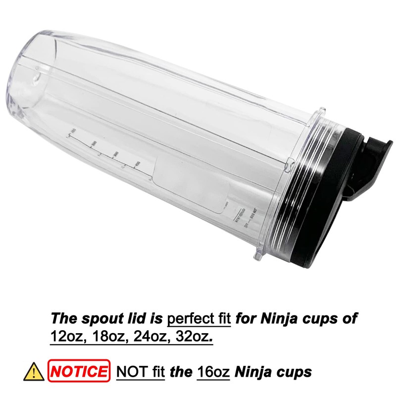 - These Spout lids have 9.4 cm in diameter with external thread, are specially designed to fit Ninja cups of 12-ounce/18-ounce/ 24-ounce/ 32-ounce. Does NOT fit the Ninja Blender that came with a 16-ounce cup.