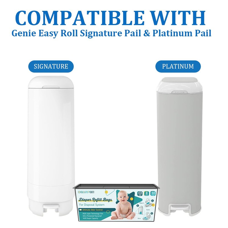 - COMPATIBILITY: The 2-Pack Diaper Refills are only Compatible with Genie Easy Roll Signature and Platinum Diaper Pails, ensuring hassle-free diaper disposal and keeping your nursery fresh and odorless