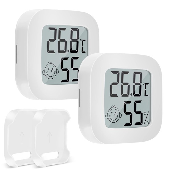 - 【Combined Package】2 Mini temperature and humidity monitors (small and lightweight, space saving and portable) and 2 Bases for easy access and suspension. You can see the humidity anywhere at a glance to meet your various needs.