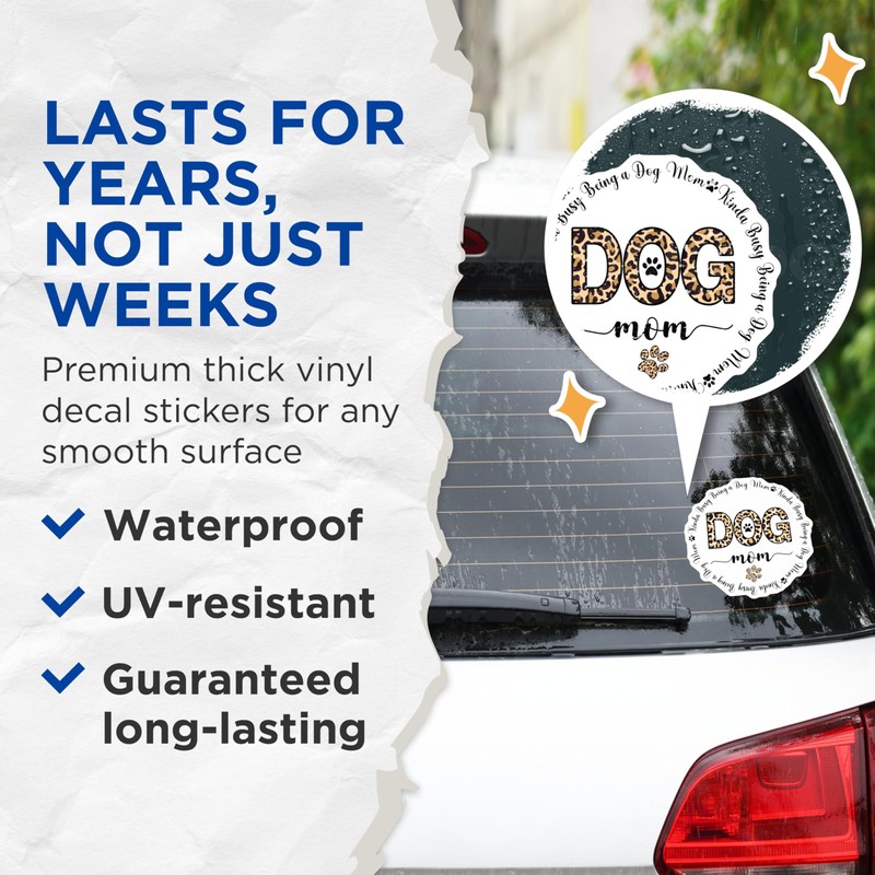 (2 Pack) Dog Mom Stickers - Kinda Busy Being a Dog Mom - Cute Pet Lover Decals - Animal Paw Print Stickers - 5" On Longest Side - Sticks to Smooth Flat Surfaces - Made in USA - BMCS6039