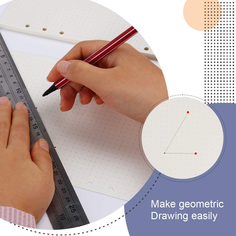 - A5 Dotted Paper Specification: 21 x 14.2 cm/8.27 x 5.59 inch, space between 2 dots : 5 mm/0.2 inch; 2 pack refill paper, each pack is 45 sheets, total 90 sheets/double-sided 180 page