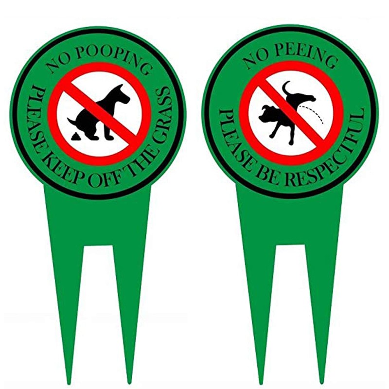 2 Pack Double Sided No Pooping Dog Sign No Peeing Dog Sign With Stake Stop Dogs From Pooping or Peeing On Your Lawn,Politely Reads:Please Be Respectful Thank You And Please Keep Off The Grass,12" x 6"