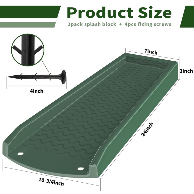 - 【Widely Used】Splash block is suitable for all types of downpipes! Two-stage split design - 1 piece splash block can be used independently to meet the needs of smaller space. Tips: This DARK GREEN splash block is more suitable for being placed in SOIL, color is low profile, integrated with the soil. If it needs to be placed on the LAWN, it is recommended to use GRASS GREEN.