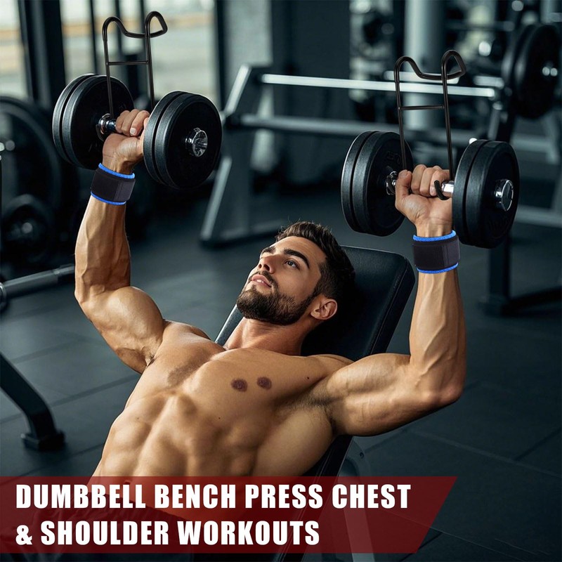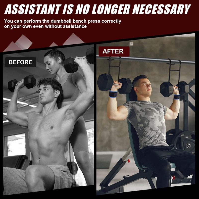 The dumbbell spotter hooks offer an innovative solution for simplifying weightlifting exercises at home. These hooks allow you to easily convert your dumbbells into a barbell for more controlled and efficient lifting. Perfect for exercises like chest presses and shoulder lifts, the hooks securely attach to dumbbell handles and hang easily onto any barbell, saving time and effort while eliminating awkward positioning.
