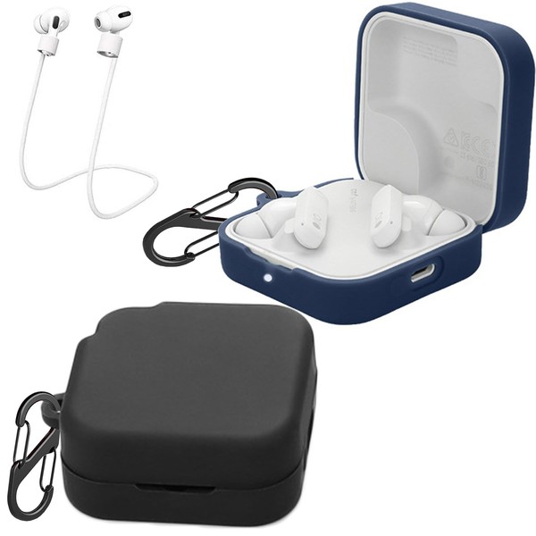 [2 Pack] easyBee Case Compatible with CMF Buds 2a Earbuds Charging Cover, 2 Keychain Anti-Lost Strap, Soft Liquid Silicone Ultra Thin Shockproof Protective Kit - Black and Blue