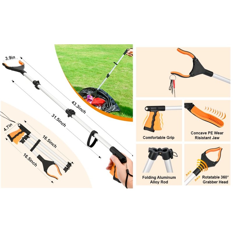 • Independence: Boasting an impressive 43 inch length, our grabber reacher tool; Made from durable materials, it ensures long-term usability, assisting users with limited mobility, those in post-surgery recovery, and anyone doing outdoor cleaning to safely reach and pick up items
