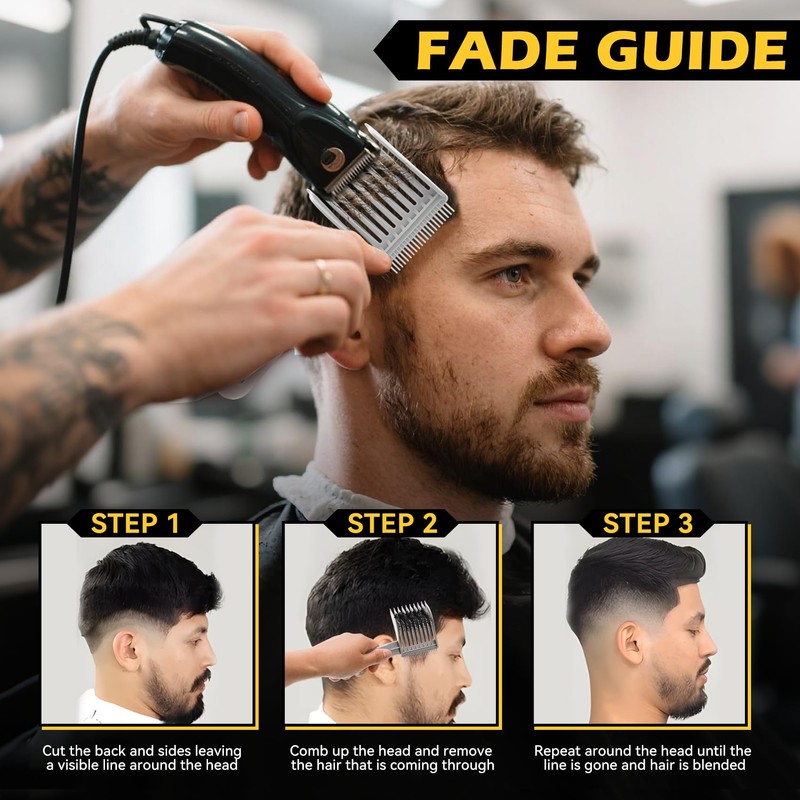 - Gift for men – Ready to surprise your husband, brother, father, and friends.The Fade Comb Set is geared towards an absolute beginner or someone who wants to practice a haircut on a family member.