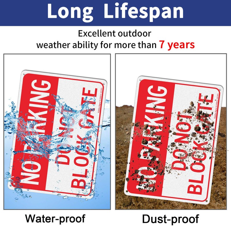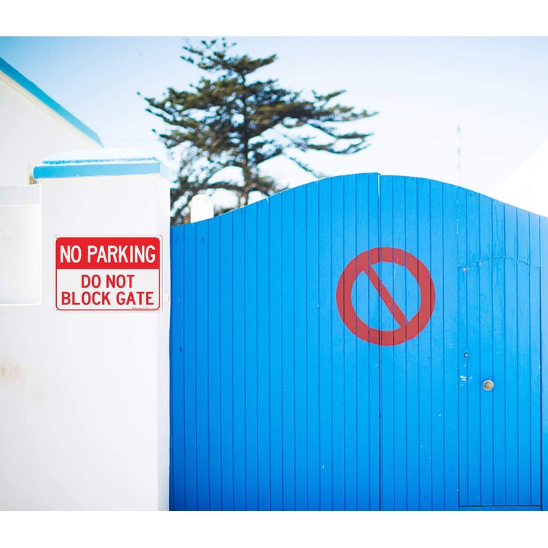 • This sign is designed with high-res red and white color, simple and clear convey the message that No Parking Do Not Block Gate.