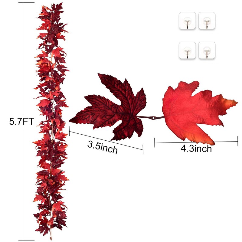 - 🍁Proper Length Fall Garland- 2 strands of 6 feet artificial maple leaf garlands, total length: 12 feet. Plus 4 hooks to hanging. Long enough for Covers most of the mantle, fireplace, front door, stairs, wall.