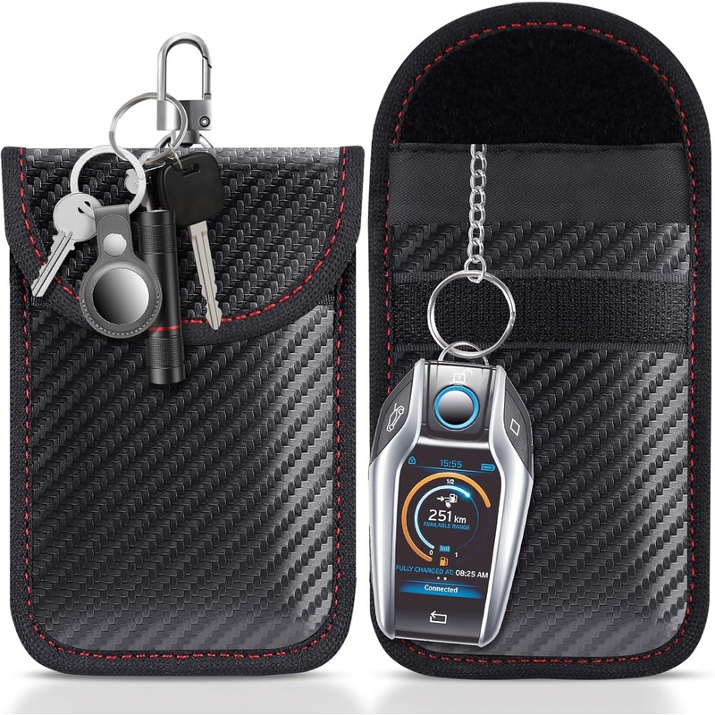 - 【RFID PROTECTION FUNCTION】 - The Lanpard Faraday bag fob features premium carbon fibre textured material and dual layers of shielding, effectively blocking signals such as phone calls, SMS, Wi-Fi, Bluetooth, 5G, and NFC. Suitable for all key fob sizes, it ensures no response from your car when keys are inside. It's an essential for protecting both your car and credit cards.