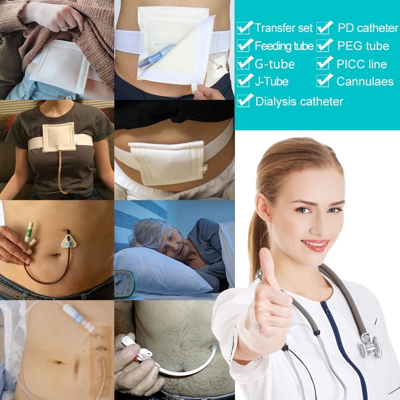 - 【Target User & Occasion】 This feeding tube belt is designed to discreetly secure G tube, Gastrostomy tubes, PEG tube, J-tube (Jejunostomy), PD (peritoneal dialysis), catheters and feeding tubes under clothing and more to your stomach, provides protective concealment for chest port, dialysis central line, tube users. Our pd belt makes living with a feeding tube more manageable for patients. Life-saver for both women and men, tube patients, sensitive skin, home dialysis, nursing home.