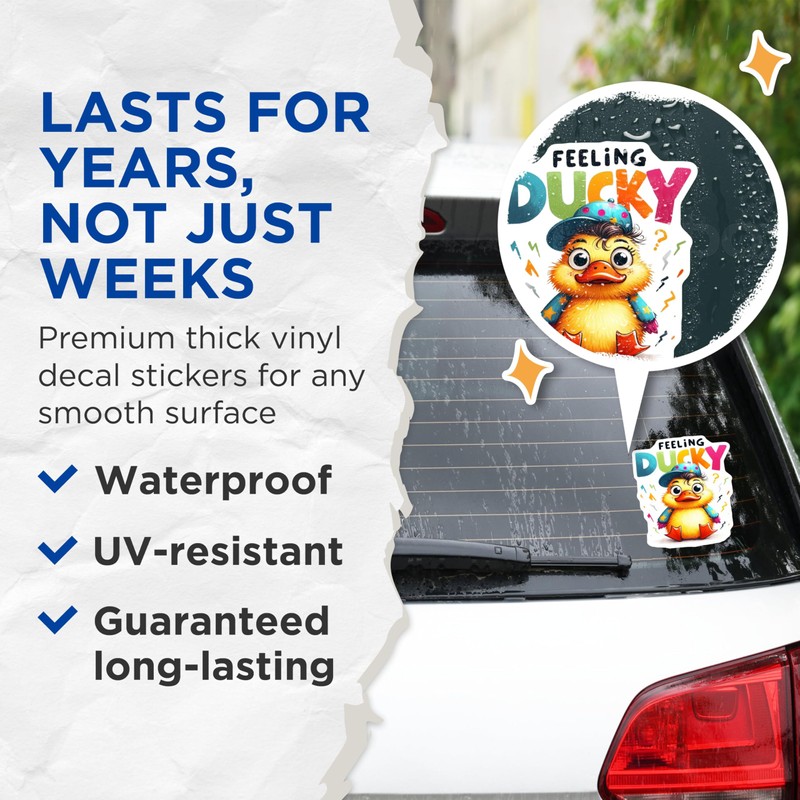 (2 Pack) Feeling Ducky Stickers - Cute Duck Cartoon - Colorful Animal Character - 5" On Longest Side - Sticks to Smooth Flat Surfaces - Made in USA - BMCS6359