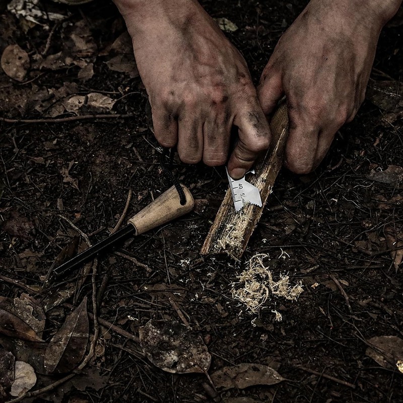 The wood handle is made of unique beech wood. It burns more easily when used as wood chips in emergency situations. You can cut wood chips from the wood handle and use it as fuel for combustion.