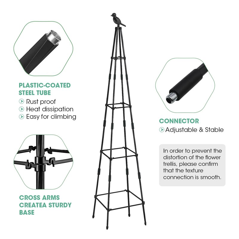 MQHUAYU 2 Pack Garden Trellis for Climbing Plants Outdoors,65Inch Cucumber Trellis Garden Obelisk Trellis Rustproof Plants Support with Adjustable Heights for Indoor Potted Plants, Vines, Vegetables