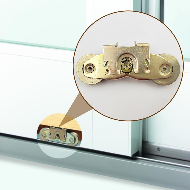 - This is a Push-In style patio door roller assembly that is push into a rectangular mortise in the bottom of the door. The housing has 2 top insert points and 4 side locking tabs to hold it in place.