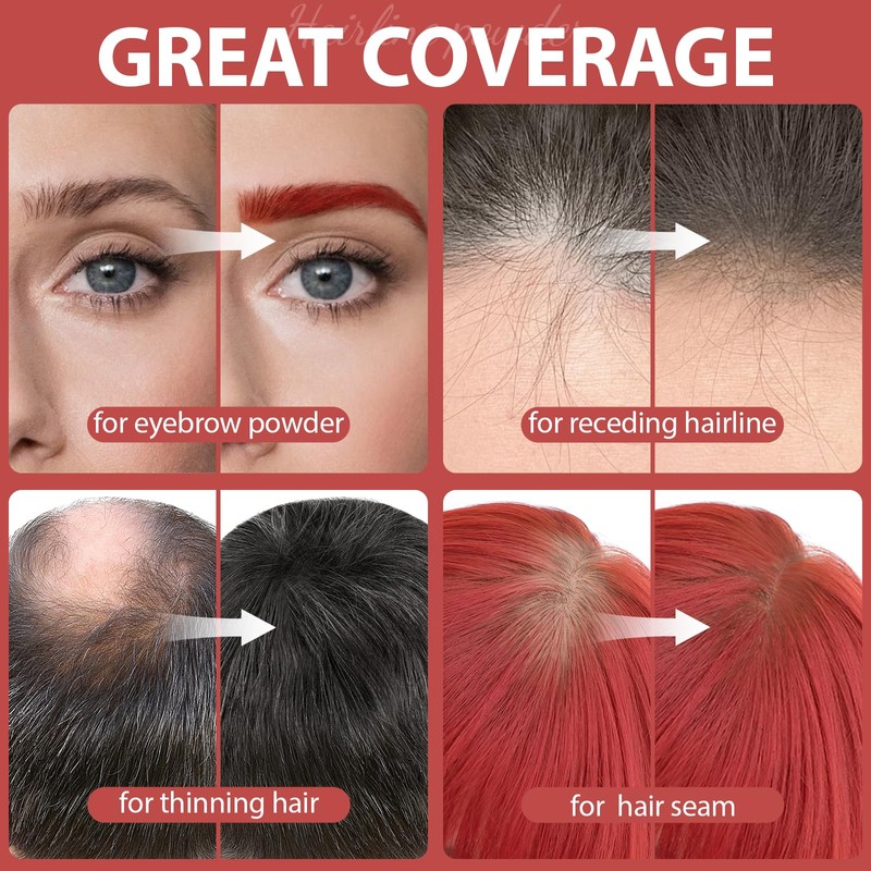 Say goodbye to gray roots, bald spots, and thinning hair with this cutting-edge hair powder specifically designed for women looking to enhance their hairline and achieve -looking results Hairline Powder offers instant coverage that lasts over 14 hours, ensuring you stay confident and fabulous all day long With its easy application process, you can effortlessly achieve the perfect look in minutes, making it an essential addition to your beauty routine The compact mirrored travel kit design makes it convenient to carry with you wherever you go, ensuring you always have the tools you need to maintain your flawless hairstyle Whether you're dealing with gray hair coverage, bald spots, or simply want to enhance your hairline for a fuller look, this hair powder is your go-to solution Its good effect blends seamlessly with you existing hair color, giving you a flawless finish every time Perfect for women of all ages and hair types, this innovative hair powder is the ultimate hair cover-up for those seeking a quick and effective solution