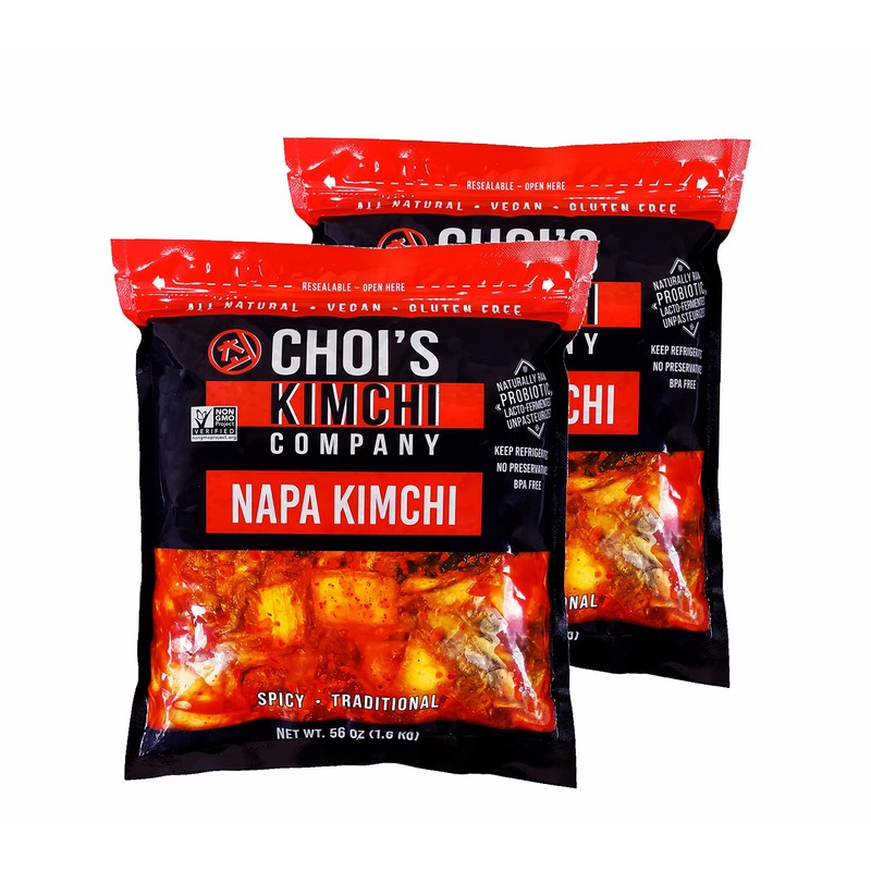 (2 Pack) Half Gallon (7 lbs.) Spicy Napa Cabbage Kimchi [Vegan, Gluten Free, Non-GMO, Probiotic] by Choi's Kimchi Co. Made in USA.