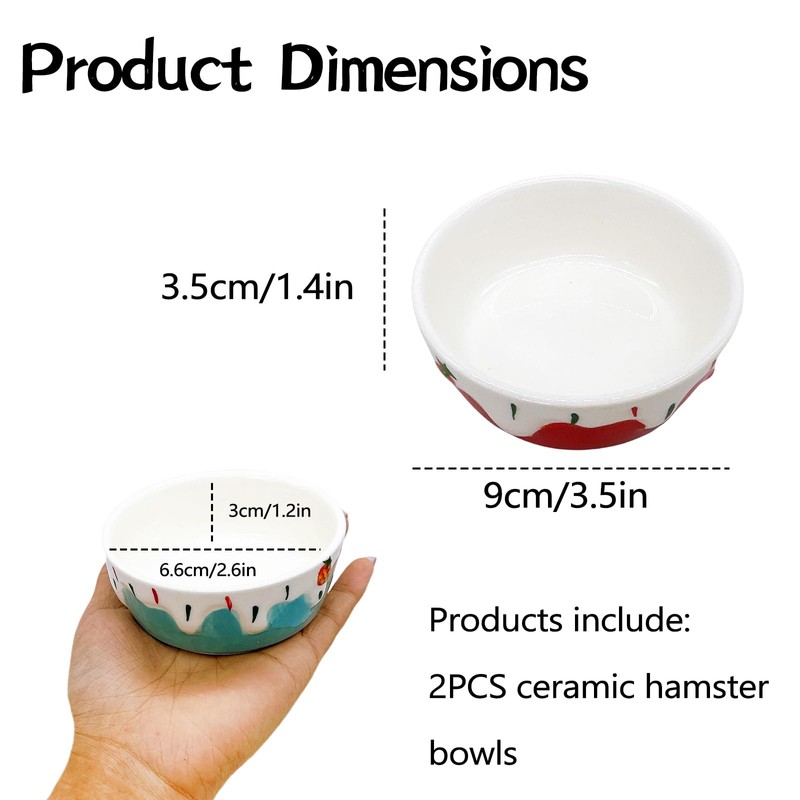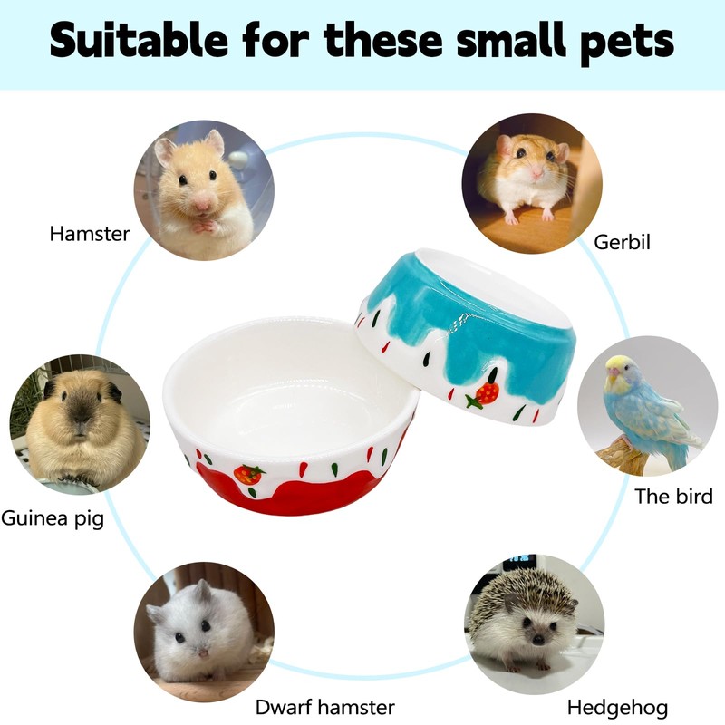 Whether you have a hamster, guinea pig, rat, or any other small animal, this food bowl is nice sized to meet their needs. Its versatility extends beyond just a hamster food bowl, making it an ideal choice for various small pets. Add a touch of practicality and style to your pet's habitat with this functional and attractive ceramic food and water bowl.