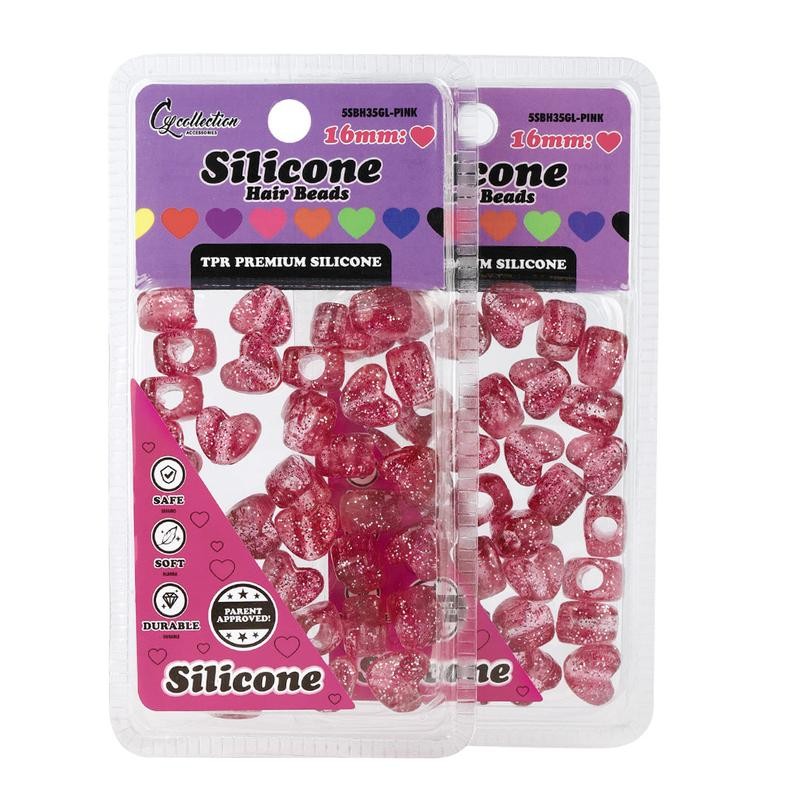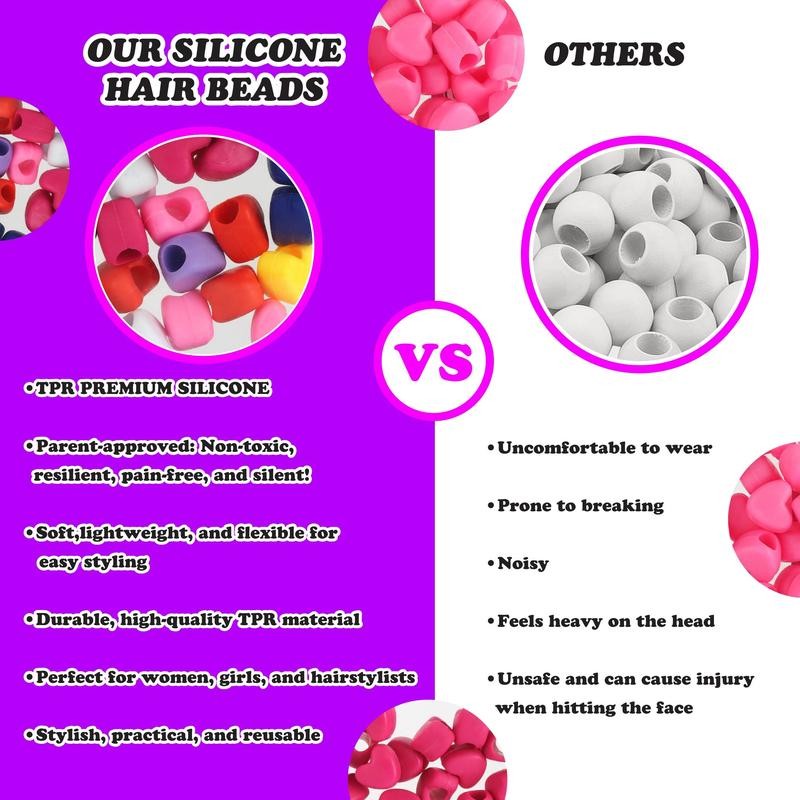 - 2 Pack Heart Shaped Silicone Hair Beads – 70 PCS 16mm, Premium Soft Rubber, Noiseless, Painless, Light for Women Girls Stylish Braiding