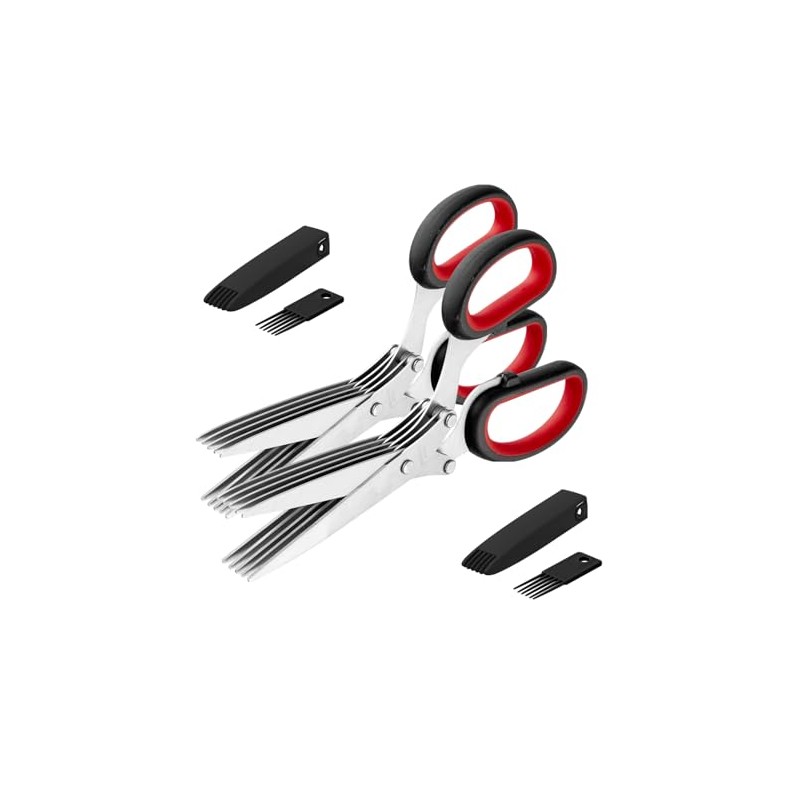 - QUALITY DESIGN: Heavy-duty steel rivet holds the 5 sharp blades together securely for consistent performance. Ergonomic handle provides comfortable and good grip for cutting, chopping or mincing.