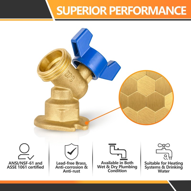 - PACKAGE INCLUDE-2 pack blue sillcock hose bibb faucet. 1/2" Female NPT Inlet × 3/4" Male GHT Outlet/Connector.