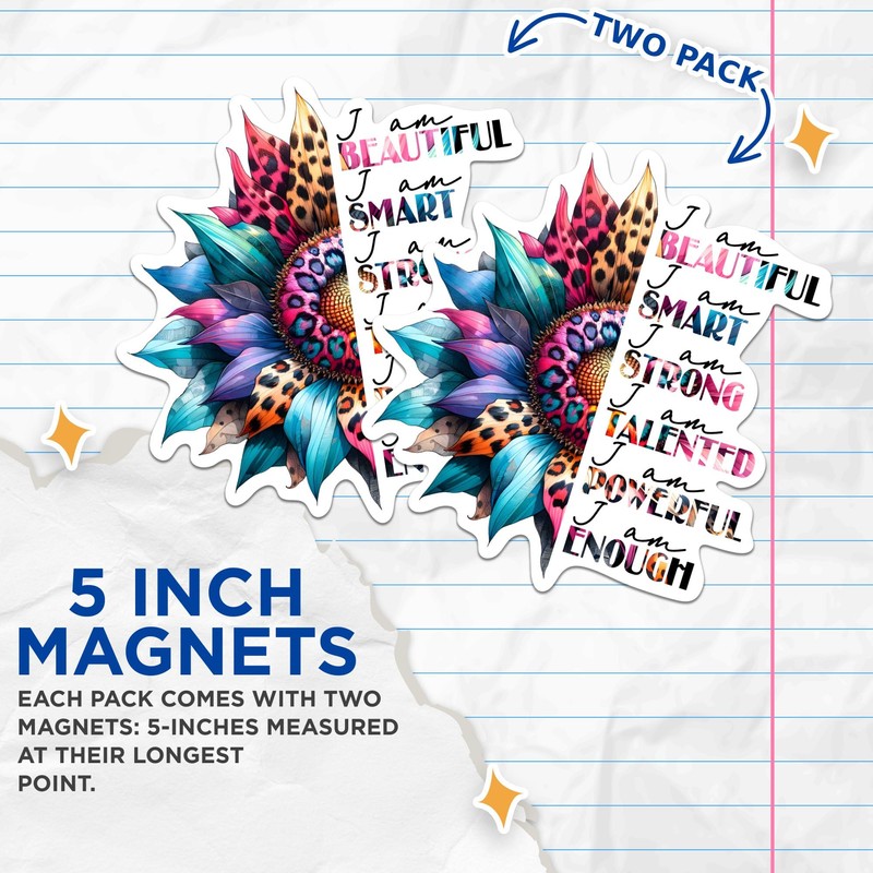 (2 Pack) I Am Beautiful I Am Smart I Am Strong Magnets - Positive Affirmations Inspiring - 5" On Longest Side - Premium Magnet - for Cars, Refrigerators, Toolboxes, Lockers - Made in USA - MAG0540