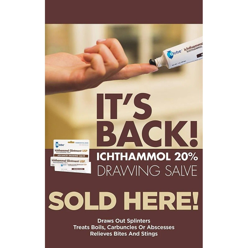 Ungüento con Ichthammol al 20%, conocido como "Drawing Salve", tradicionalmente usado para extraer impurezas de la piel como astillas, forúnculos y abscesos, ofreciendo alivio rápido y limpieza profunda.