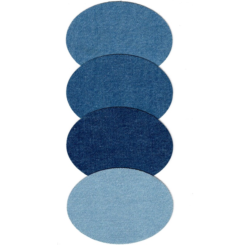 2-Pack Iron-On Denim Patches for Jeans Oval Knee and Elbow Repair Patches for Jackets Pants and Shirts Durable No-Sew Fabric Fix Embroidered IronOn & SewOn Patch DIY Clothing (Ice Blue)
