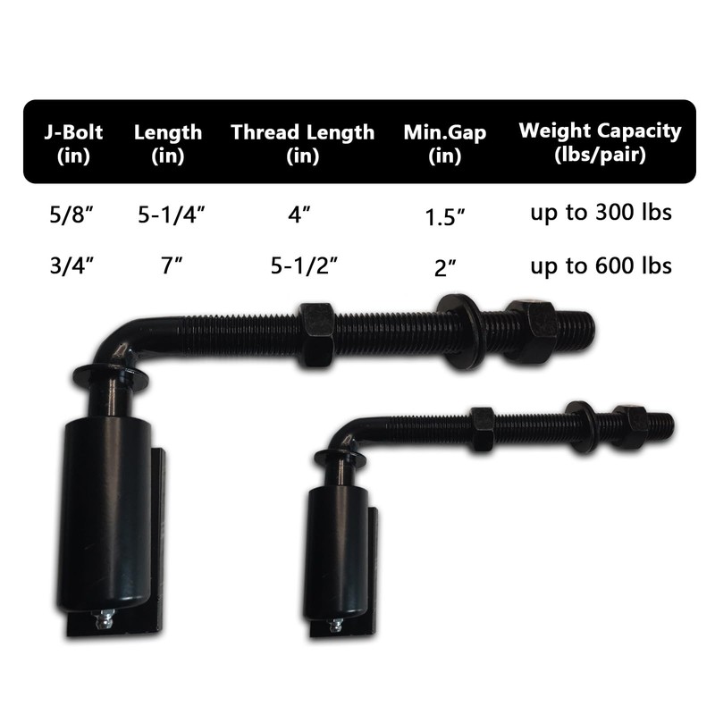 Each pair of J-bolt hinges can hold up to 600 lbs, making them an excellent choice for driveways and security gates.