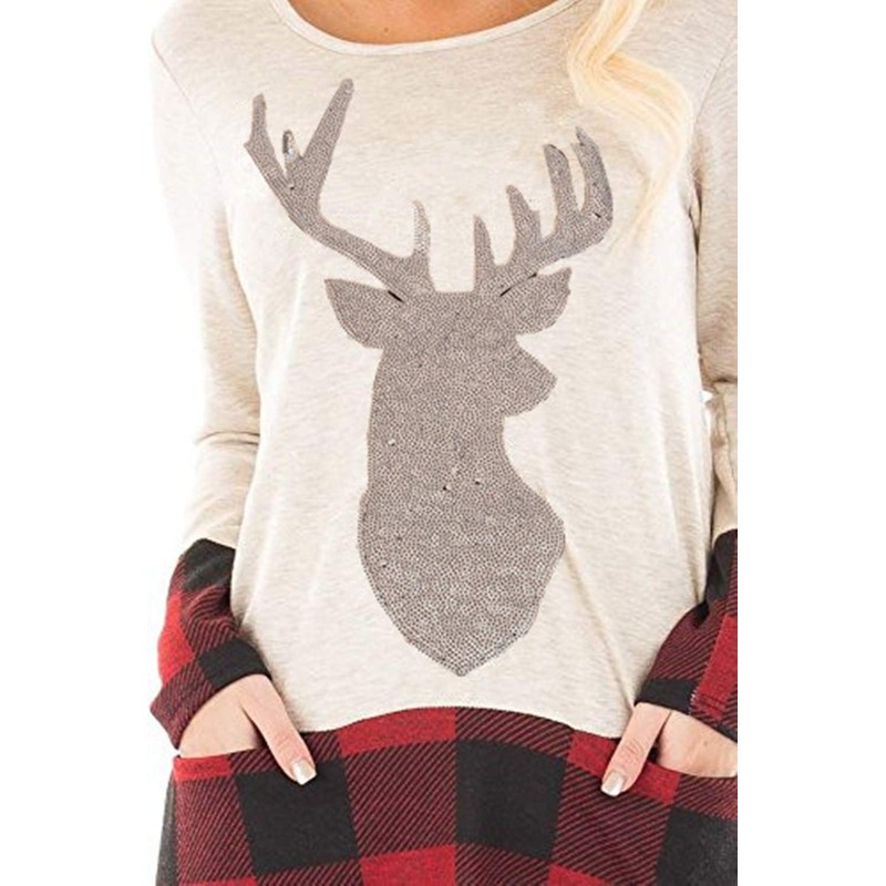 2 Pack Jumbo Christmas Deer Head Iron on Patches Sew on Embroidered Patch Sequin Appliques for DIY Motif Family Chritmas Tops Clothing Decor