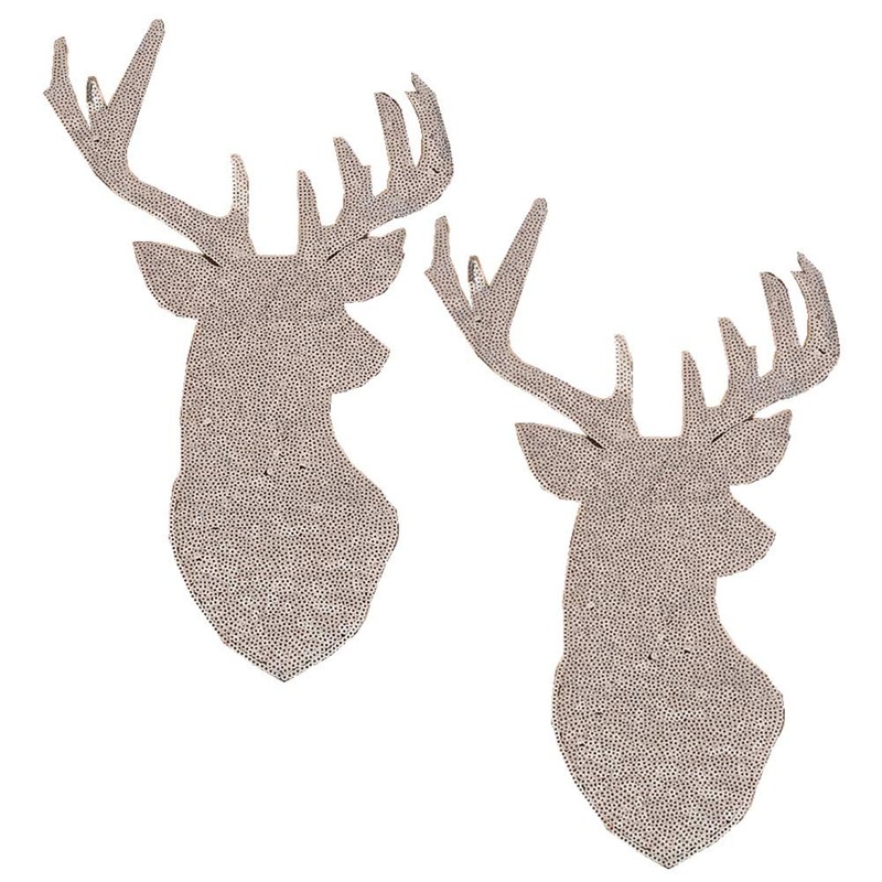 2 Pack Jumbo Christmas Deer Head Iron on Patches Sew on Embroidered Patch Sequin Appliques for DIY Motif Family Xmas Tops Home Decor (Silver)