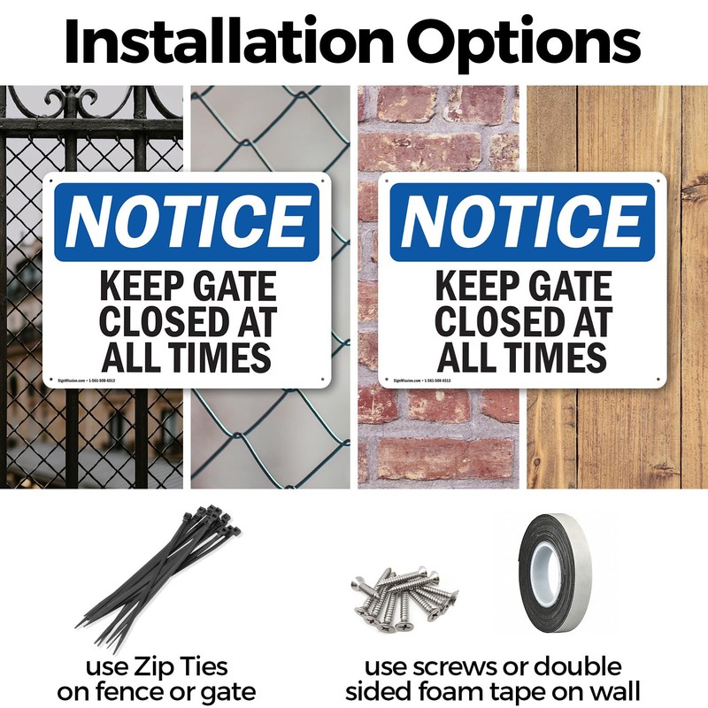 (2 Pack) Keep Gate Closed At All Times OSHA Notice Sign 14 Inch X 10 Inch Pla...