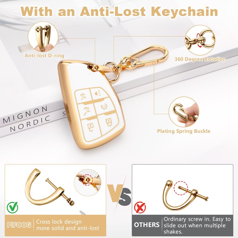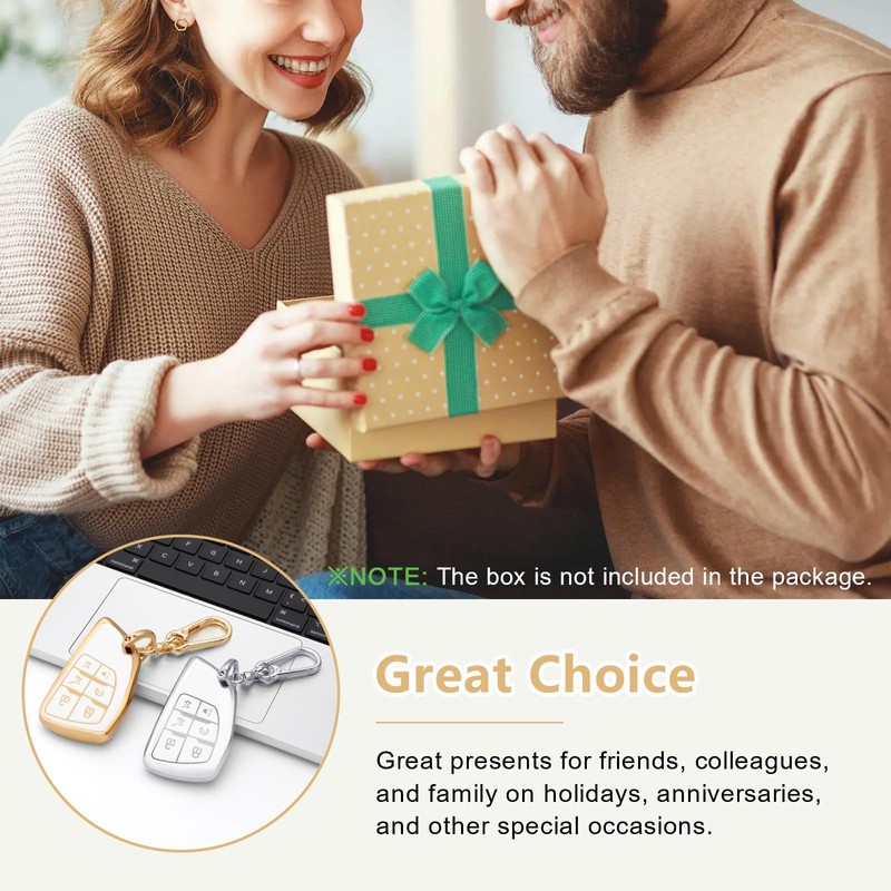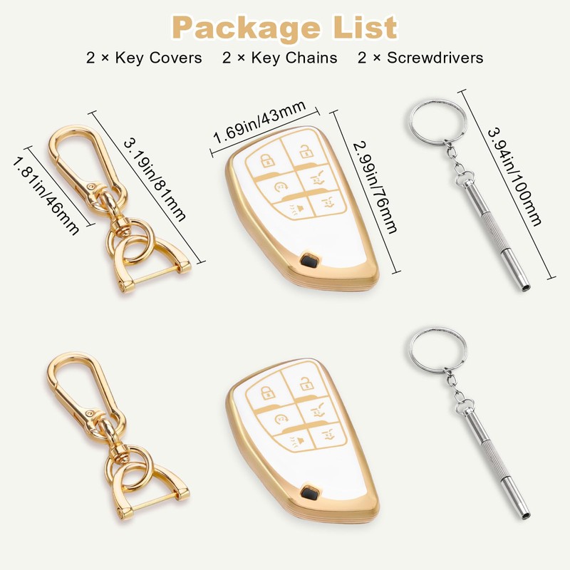 • What You Get: Package includes 2PCS tpu car key fob case fit for GMC Yukon Chev, 2PCS anti-lost silver gold car keychain fit for GMC Yukon Chev with installation tools. It's a great and practical item to give to family, friends and colleagues etc.