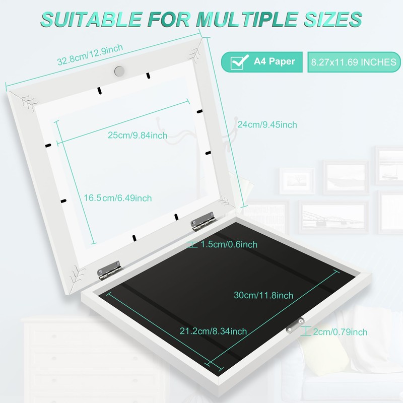 - 🎨【WALL DECOR】The artworks picture frame is great for displaying kids drawings, 2D and 3D artworks, pictures, documents, certificates and photos! The pre-installed hanging hardware supports both vertical and horizontal wall displays. Just hang it on the wall to show your child's artwork and multiple pictures in an instant.