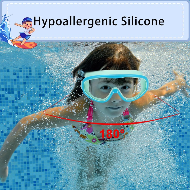 - Safe for Kids: Made from odorless and hypoallergenic silicone, the goggles are latex and PVC free, which is especially recommended for your children. The wide & thick silicone eye sockets can fit all children’s faces, which provides perfect waterproof & comfortable wearing experience