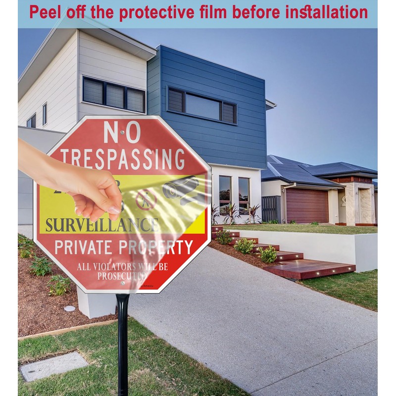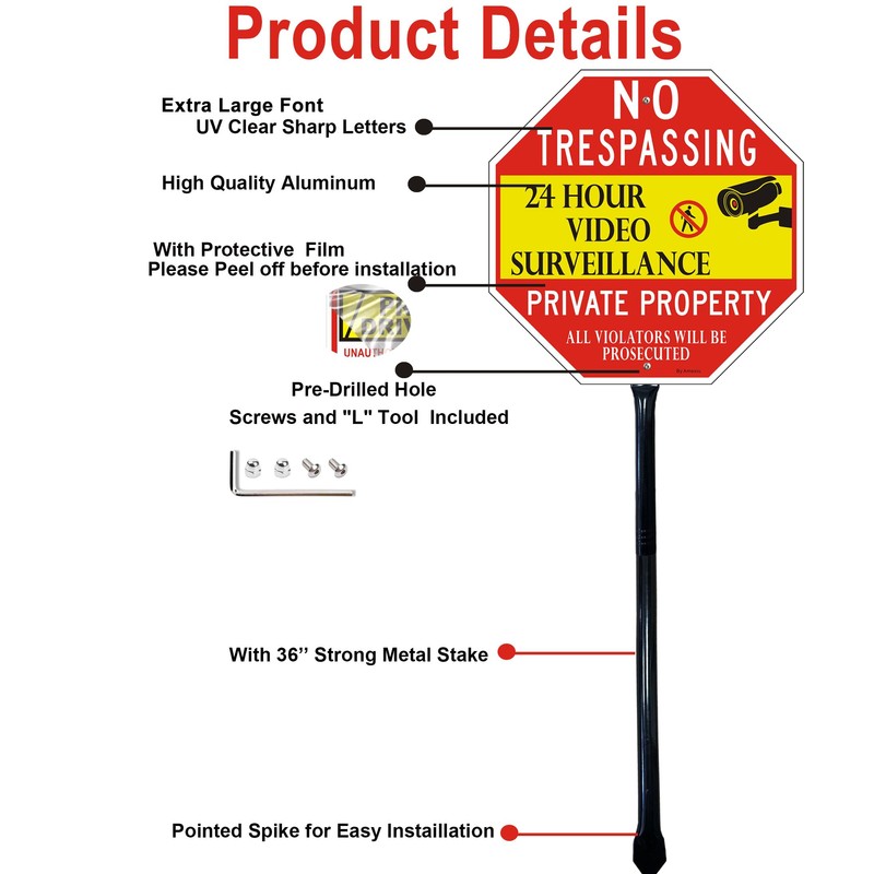- Size: – ➤ The Private Property Sign is 12 x 12 inches, and 36” Tall metal stand stake