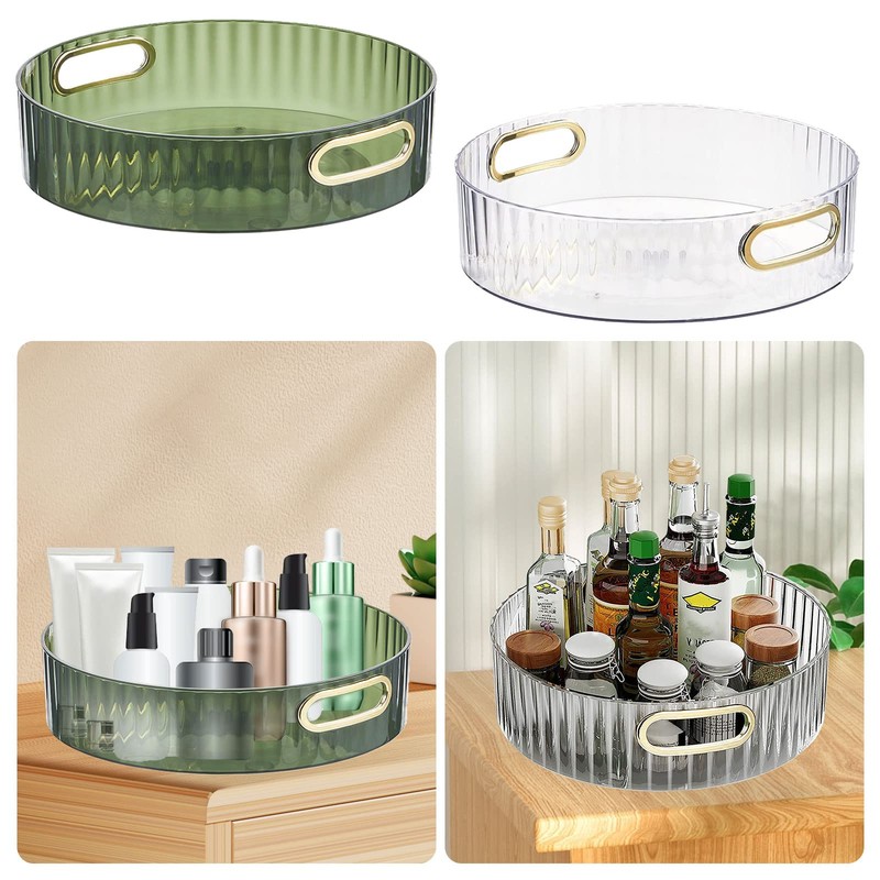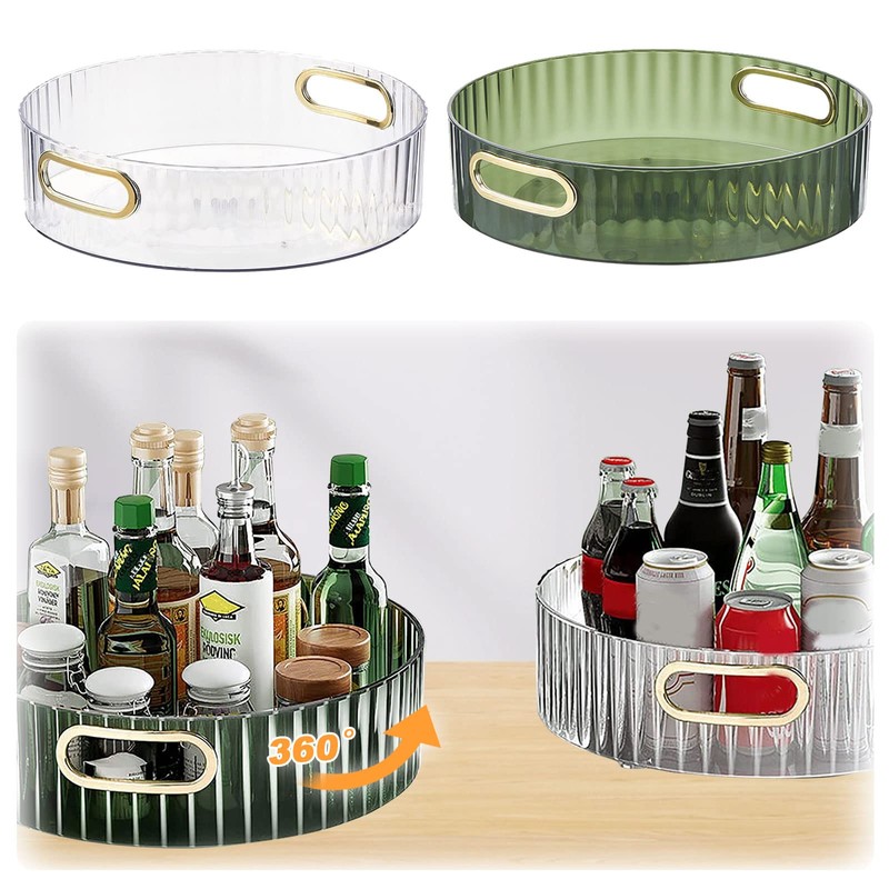 - 【Stylish design】When it rotates in a circle, the raised edge keeps items from falling out. This lazy tray has a comfortable grip, smooth edges that won't hurt your hands, and it's easy to clean. Simply rinse with water. The transparent design allows you to see what's inside and matches perfectly with modern furniture.