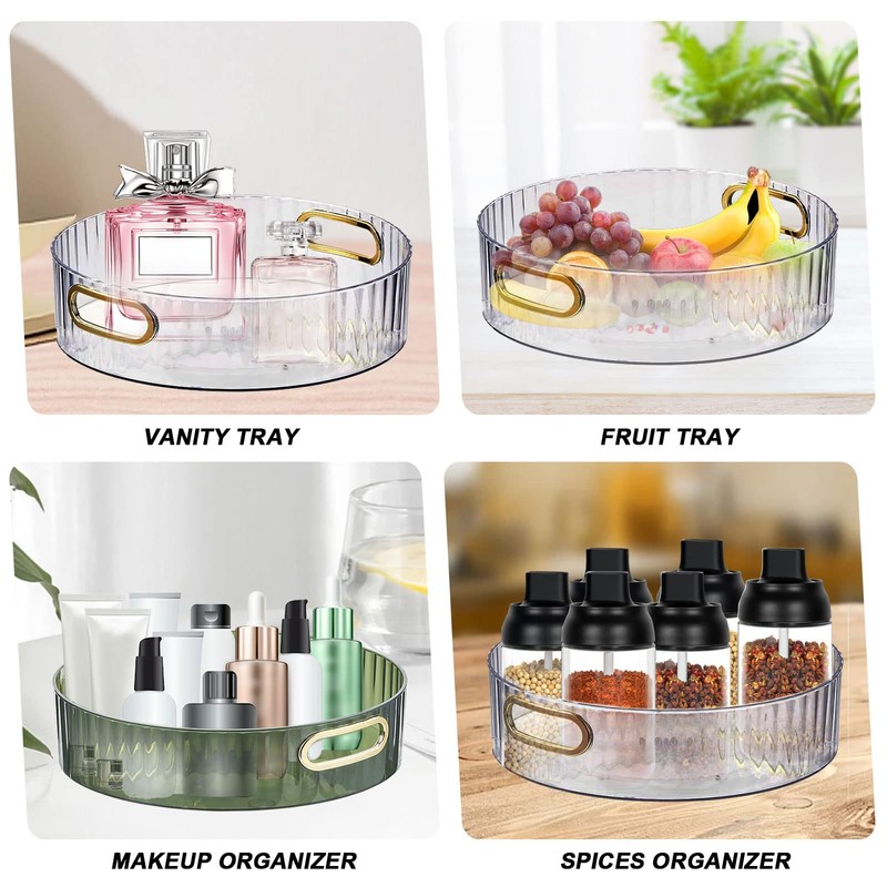 【360° smoothly rotating lazy susan】 The turntable organizer is designed to effectively keep your space organized. This rotating tray allows you to maximize your valuable storage space and keep your stuff in easy reach. Get what you want quickly and stop rummaging.