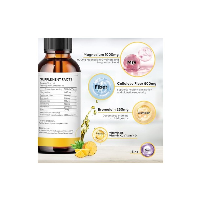 (2 Pack) Magnesium Glycinate Liquid Drops,High Absorption Magnesium Magnesium Supplement for Muscle, Nerve, Bone and Heart Support,60 Serving,Pineapple Flavor