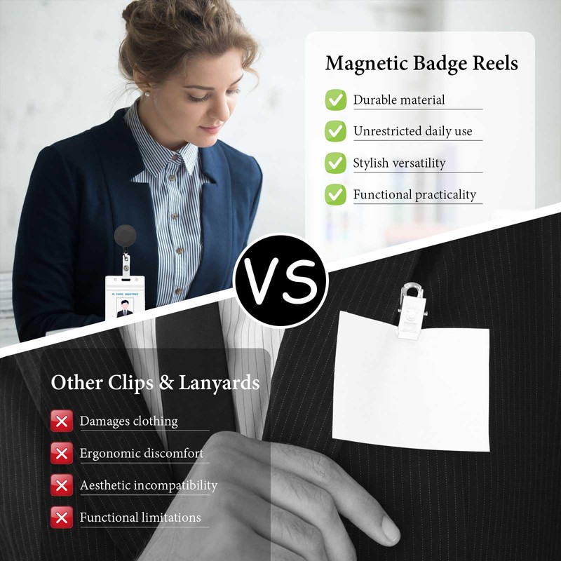 - [Ideal Choice] Engineered for dynamic work environments across healthcare facilities, corporate offices, or academic settings, this magnetic badge clip system keeps your credentials securely positioned - from hospital ID cards to conference name tags. Essential for nurses during patient rounds, teachers managing classrooms, or executives in fast-paced meetings, ensuring your identification stays accessible yet protected throughout the workday